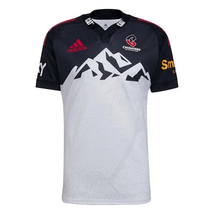 Crusaders 2022 Super Rugby away jersey blends eco‑friendly Primeblue fabric with bold club styling—ideal for passionate fans and active wear.