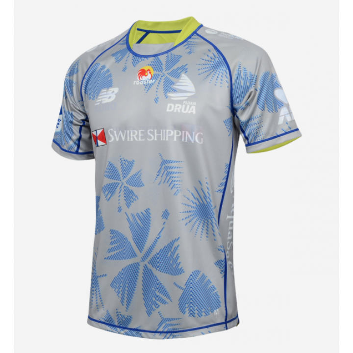 Sublimated Fijian Drua and New Balance logos front and back for authentic team branding.