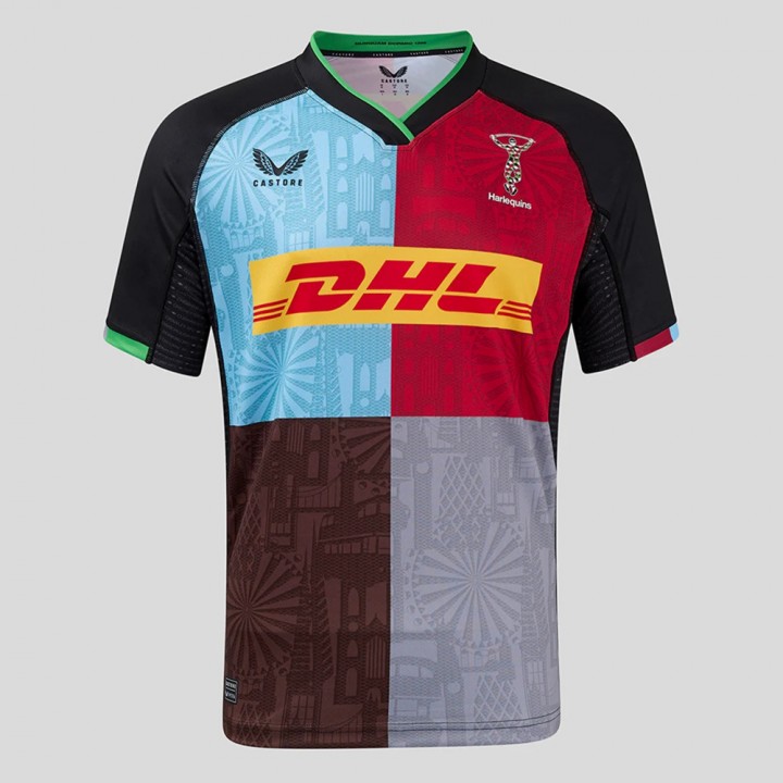 Tags: Harlequins jersey, rugby home shirt, moisture‑management jersey, Castore rugby