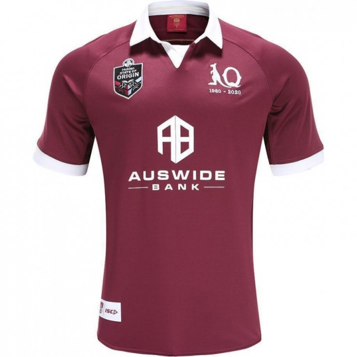 Maillot domicile officiel QLD Maroons — identique à celui porté lors du State of Origin 2020.