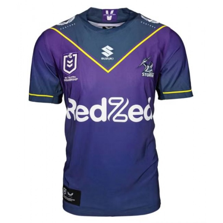 Melbourne Storm Mens Home Rugby Jersey 2022 blends club heritage with modern performance. Designed by Castore, it features the iconic purple and navy palette with sharp yellow lines and authentic badges—crafted for fans who demand both style and authenticity.