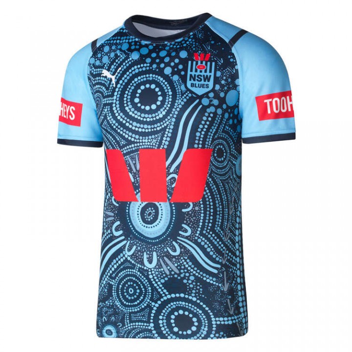 Official State of Origin Indigenous jersey with authentic NSW Blues chest crest.