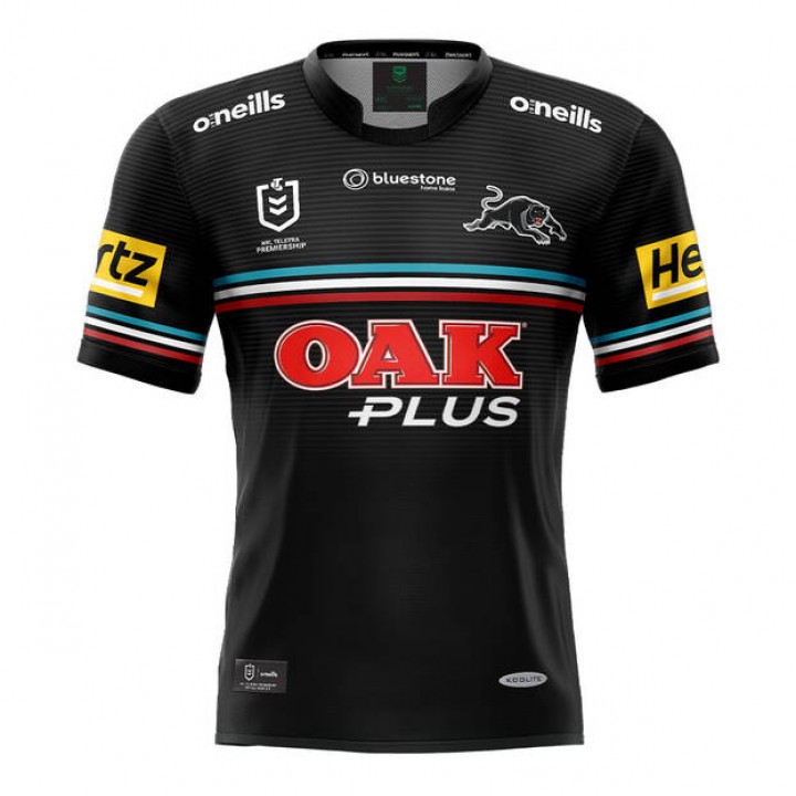 Embroidered team & sponsor logos for licensed Penrith and NRL authenticity.