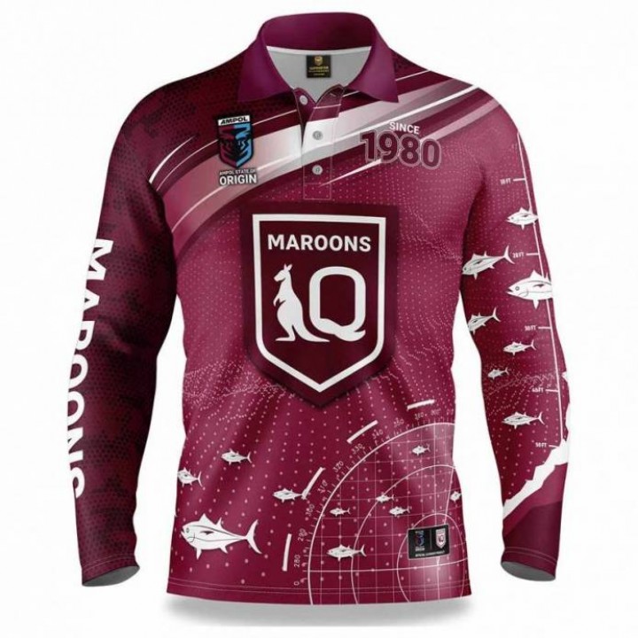 Tags: QLD Maroons shirt, fishing shirt, NRL merchandise, moisture-wicking apparel