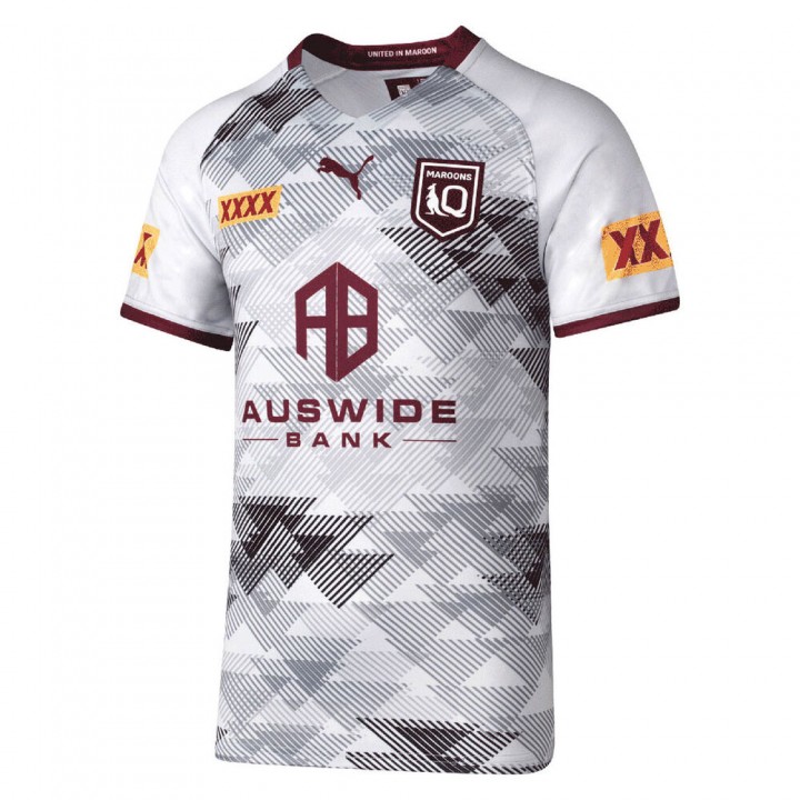 Design officiel Maroons avec graphisme sublimé et écusson QLD Maroons authentique.